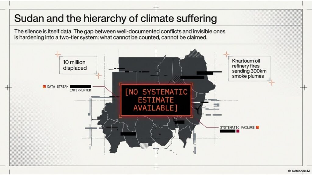If something like 5.5% of global emissions is produced by military activity yet never fully enters the official ledger, then every climate target is shadowed by omission. What appears as a gap in accounting is, in fact, a deeper failure of political imagination. War does not simply add emissions to the atmosphere; it sets in motion a recursive logic in which conflict fuels carbon release, carbon destabilises climate, climate disruption intensifies drought, fire, and scarcity in already fragile zones, and those conditions in turn generate further violence and further emissions. The result is not a one-off discrepancy but a compounding distortion. A climate regime that cannot see this loop cannot truly govern it, and any promise of emissions reduction made without it remains, at least in part, a fiction.